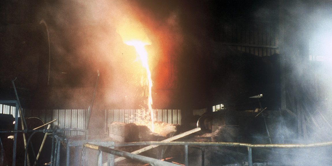 Molten metal flowing in industrial setting