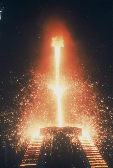 Liquid metal casting process in action
