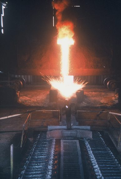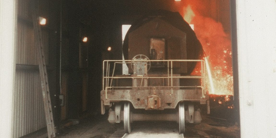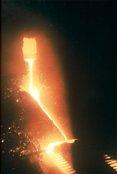 Molten metal pouring in steel mill