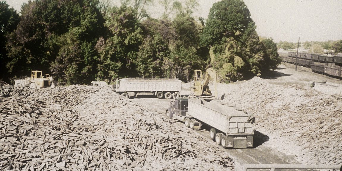 Industrial wood processing with trucks